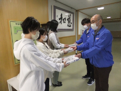 2022年はコロナ感染拡大のため街頭活動は中止秋田大学医学部の皆様に子宮頸がん検診受診リーフレットを配布 |
